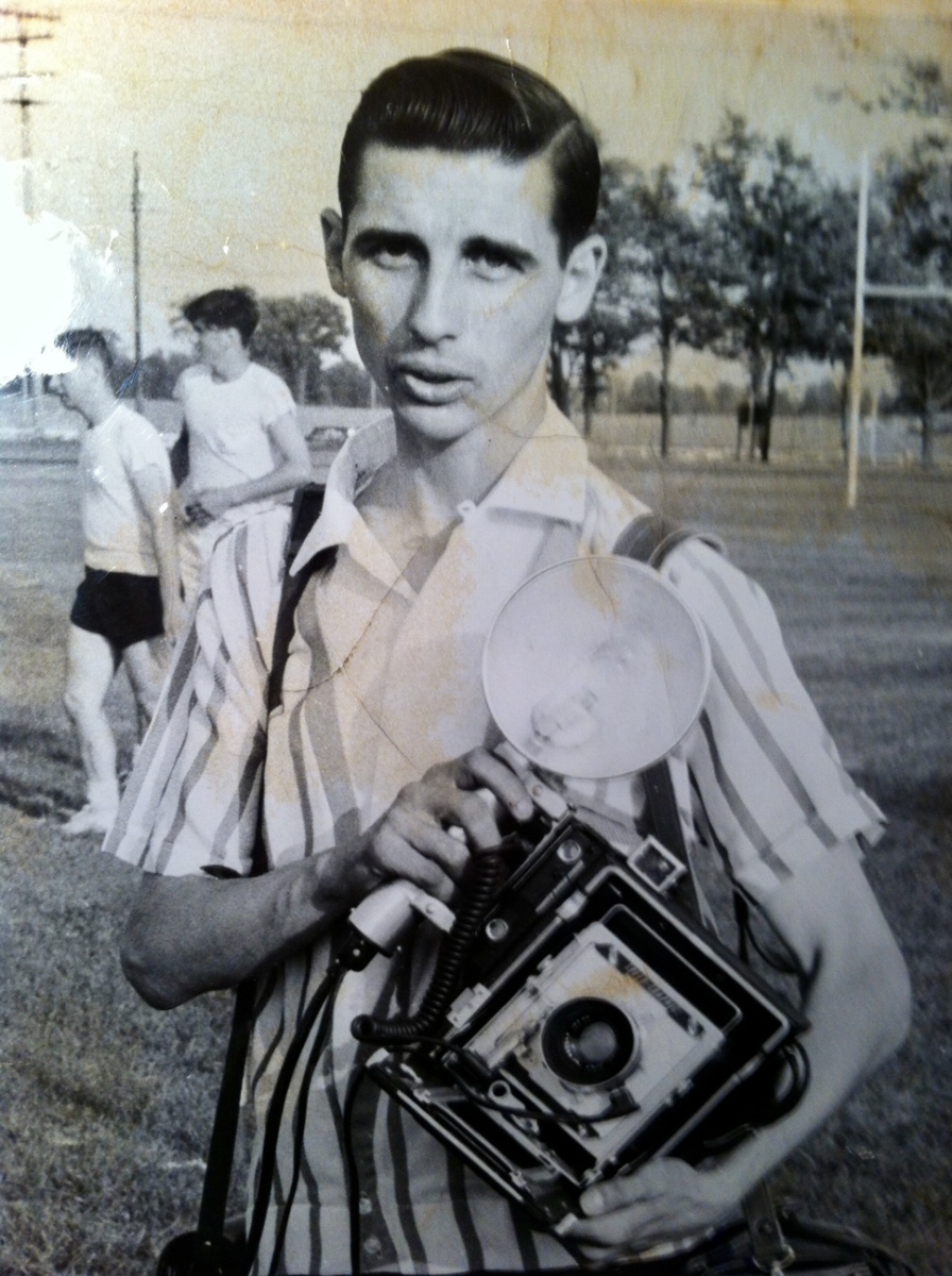 Assigned to photograph an Air Cadet Camp on TD. Of note, the Speed Graphic; no other camera was available in Photo Trade in those days for ordinary work.The strobe is a Multiblitz.  RCAF Station Centralia c. 1960s. Photo courtesy Roland Reeves.